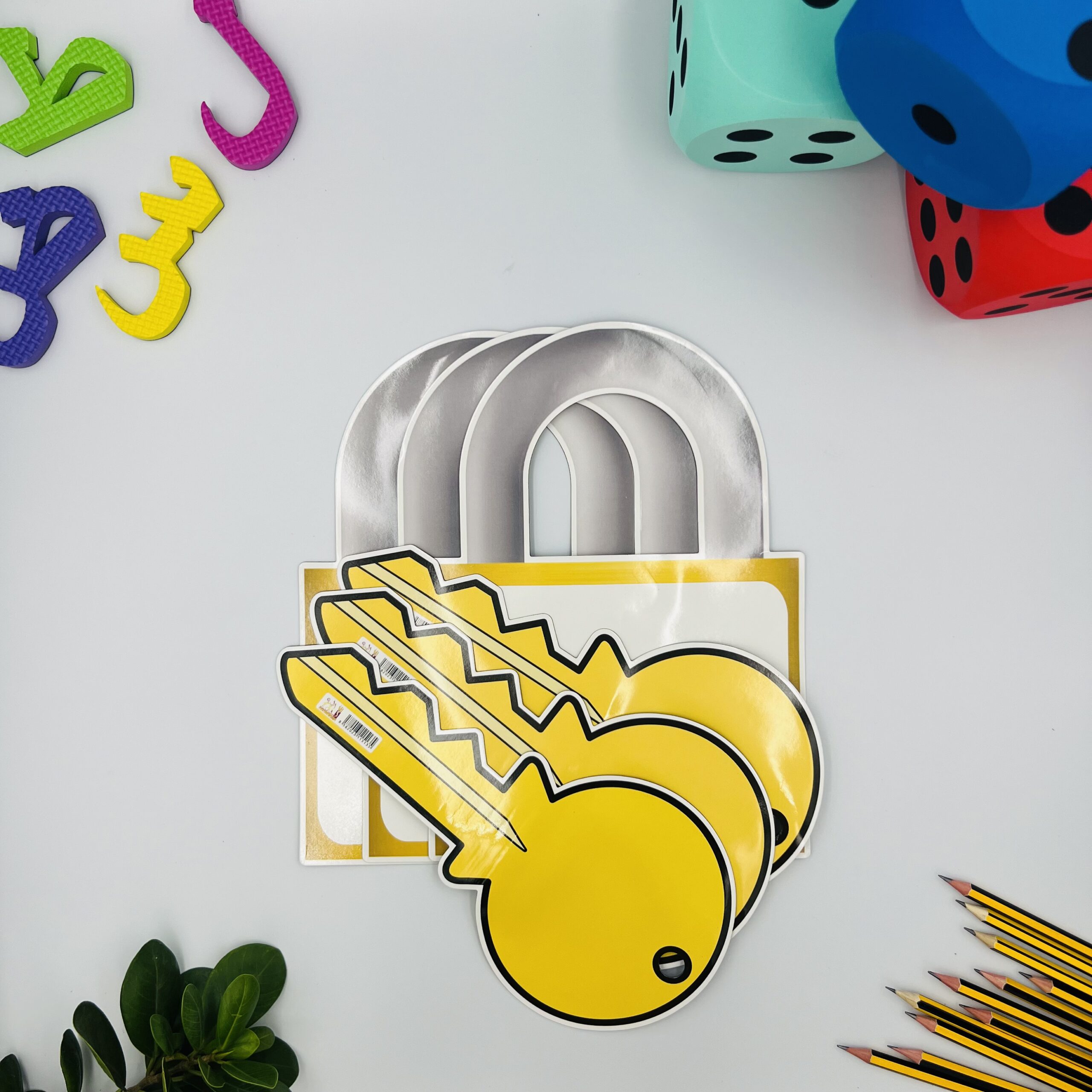 الأشكال الجميلة والألوان ستضيف الكثير من المتعة إلى حصتك، يمكنك استخدام استراتيجية القفل والمفتاح بما يتناسب مع المادة التي تدرسها، فمثلاً يمكن استخدامها لـ: المعادلة وحلها – الكلمة ومعناها – الكلمة ومضادها – الرموز ومدلولاتها، ويمكن استخدامه كنشاط مزاوجة أو توصيل.