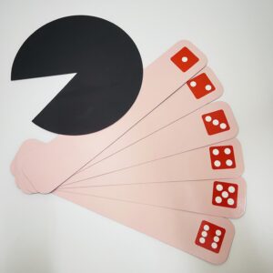 وسيلة ممتعة ممغنطة بالكامل، يتم كتابة المطلوب في البطاقات الست التي تحوي أرقام حجر النرد، ثم يقوم الطالب برمي حجر النرد و ينفذ المطلوب في البطاقة المشابهة للرقم الذي ظهر له .